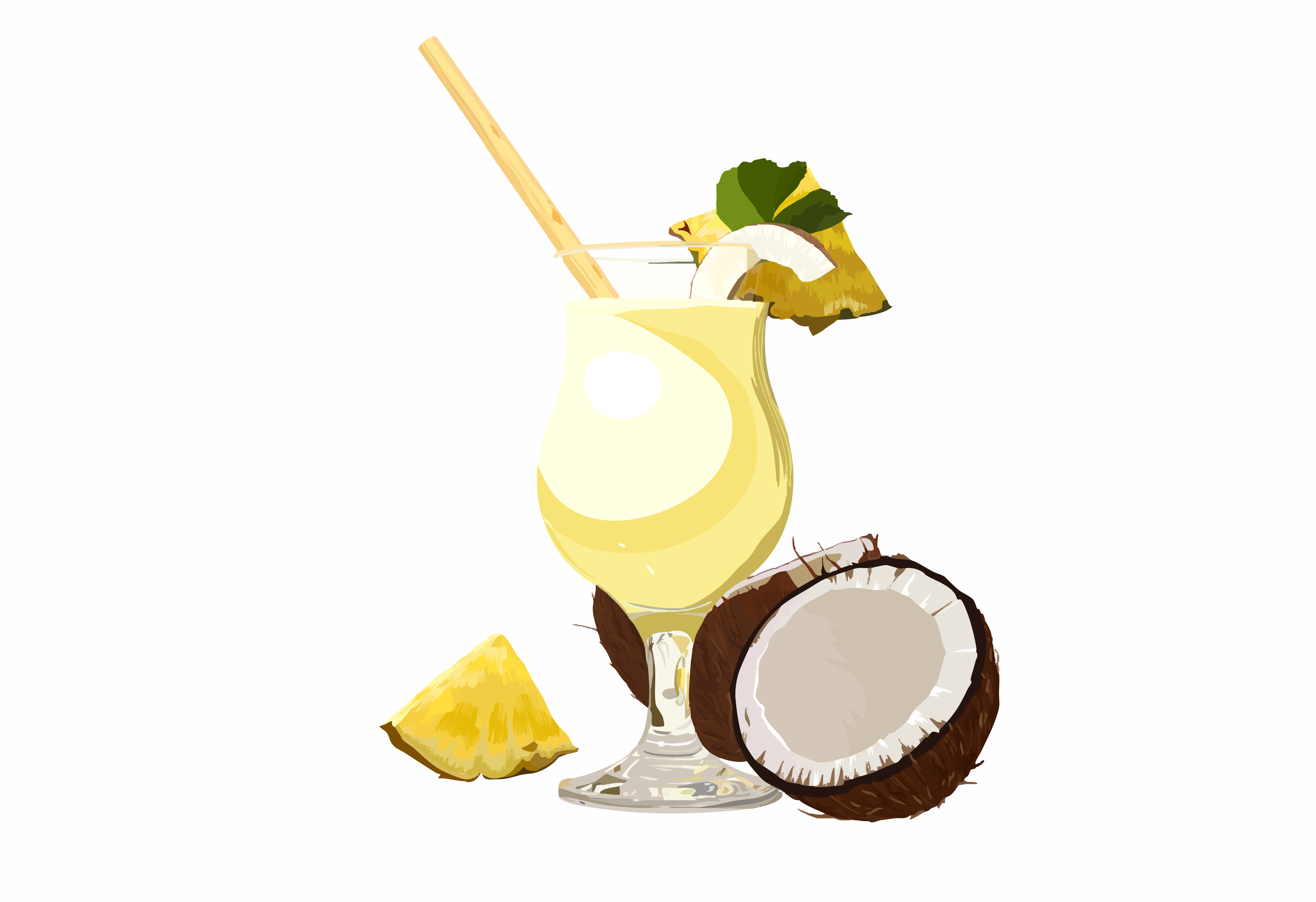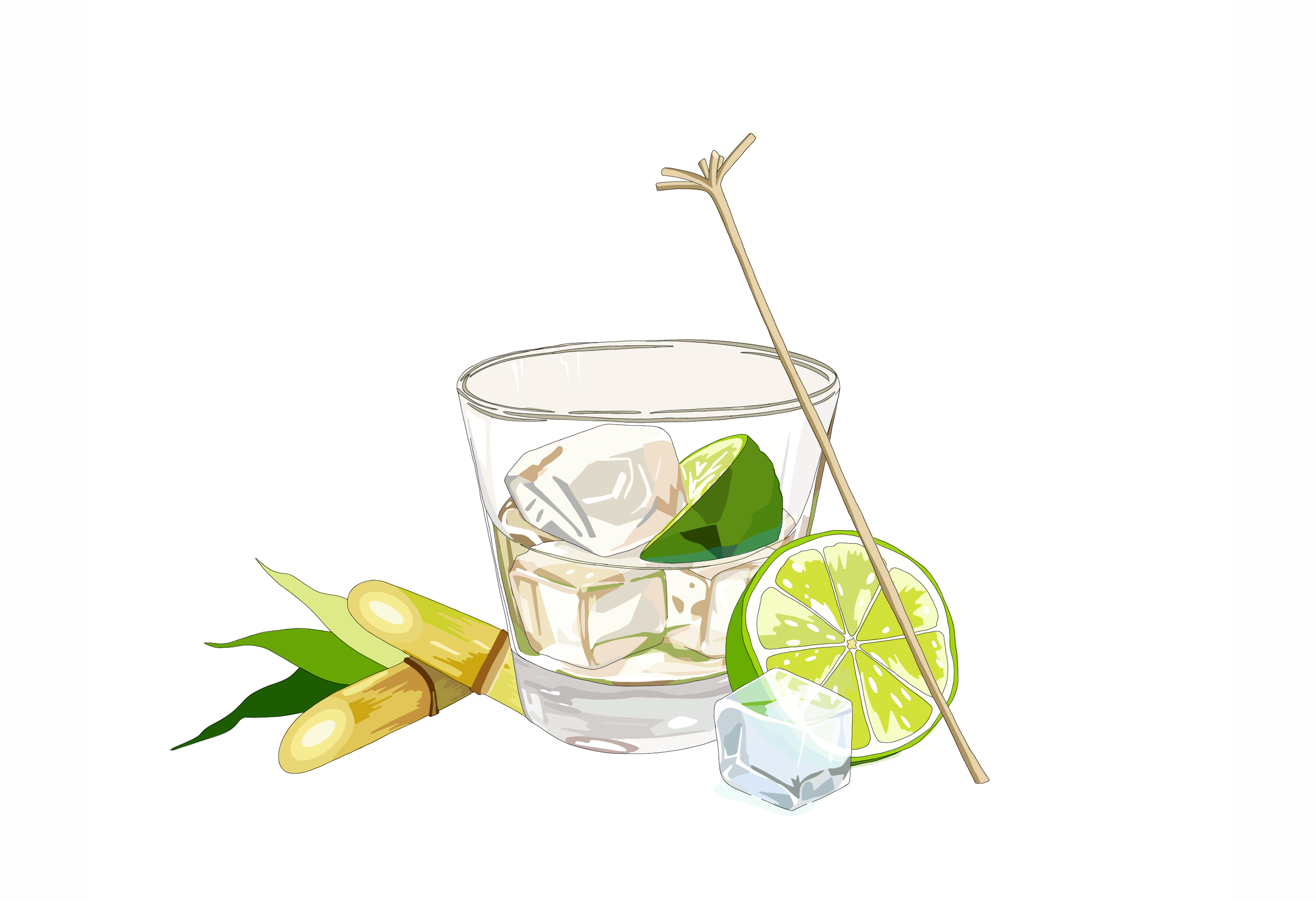 Illustration of a glass of Ti’Punch,a glass of Planteur and a glass of Punch Coco