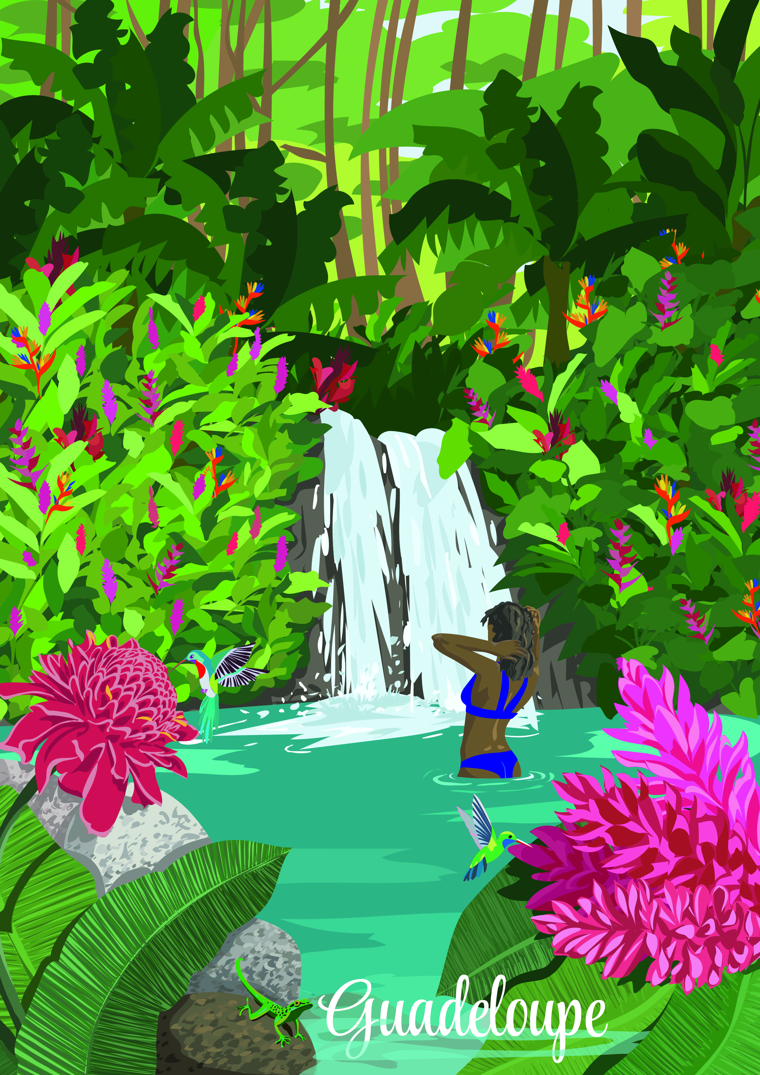 As part of the tourist promotion of sites in the French Overseas Departments, I was charged with designing three separate illustrations to highlight specific tourist products from these regions.